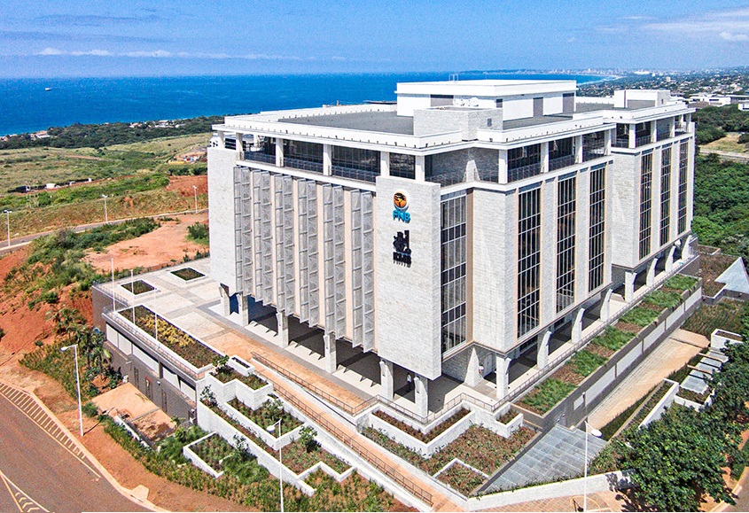 and has an investment division, headquarters is a 8,100m2 "green" building boasting a "barcode" facade design in the prestigious Ridgeside precinct of uMhlanga.